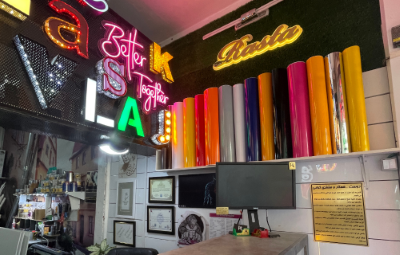 معرف کسب کارها بر روی شیشه با جلوه ای زیبا و مبلغی اقتصادی برای نمایش جزئیات