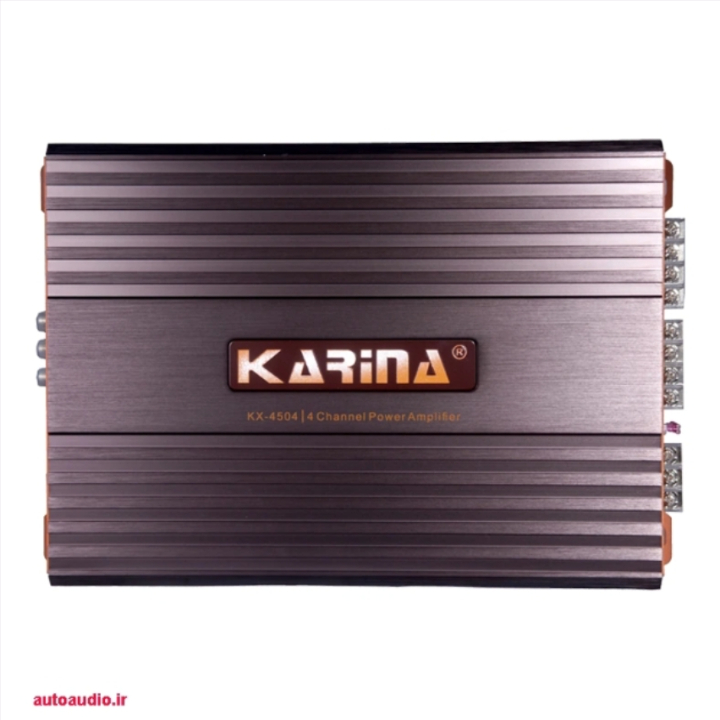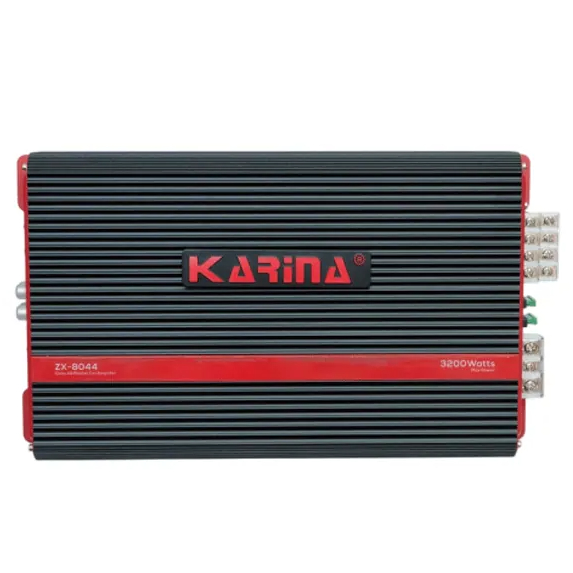 مشخصات آمپلی فایر کارینا 4 کانال ZX-8044 توان خروجی RMS مقاومت 1 اهم : 260w توان خروجی RMS مقاومت 2 اهم : 130w توان خروجی پل 4 اهم : 260w THD <=0.10% واکنش فرکانس : 10Hz – 45KHz سیگنال به نویز : 90 دسیبل فیوز : 2 عدد 30 آمپر