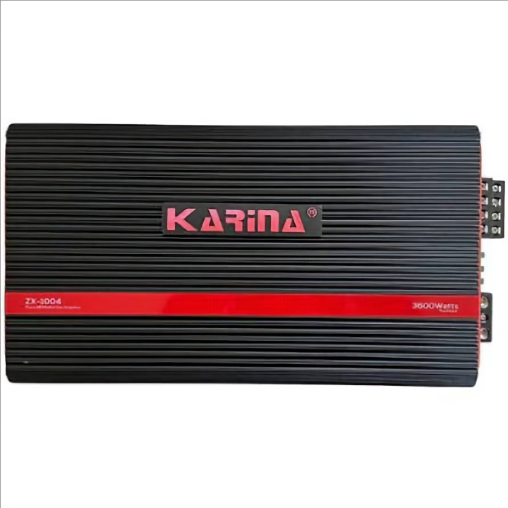 مشخصات آمپلی فایر کارینا 4کانال ZX-1004 توان خروجی RMS مقاومت 2 اهم : 160w توان خروجی RMS مقاومت 4 اهم : 100w توان خروجی پل 4 اهم : 320w THD <=0.10% واکنش فرکانس : 10Hz – 45KHz سیگنال به نویز : 90 دسیبل فیوز : 3 عدد 35 آمپر