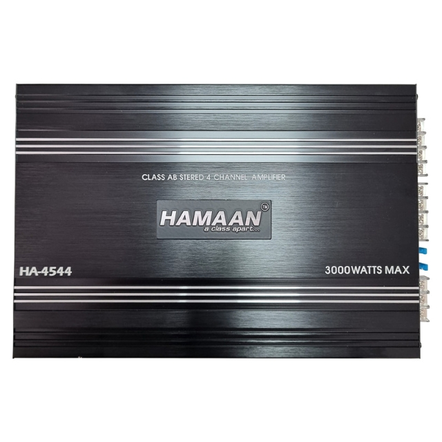 مشخصات آمپلی فایر هامان HA-4544 ابعاد: 30×25×10 سانتیمتر بیشترین توان خروجی: 3000 وات تعداد کانال: 4 کانال توان خروجی مداوم (RMS) در هر کانال 4 اهم: 45 وات فیوز: دو عدد 15 آمپر وزن: 3000 گرم ویژگیها: ترمینال اسپیکر پیچی قابلیت پلزنی (Bridgeable) کلاس AB ترمینال RCA